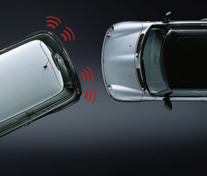 Facilita l’entrata nel parcheggio e le manovre negli spazi ristretti. Gli ostacoli vengono riconosciuti e segnalati acusticamente a partire da una distanza di circa 1,5 m grazie a quattro speciali sensori, montati nel paraurti posteriore.